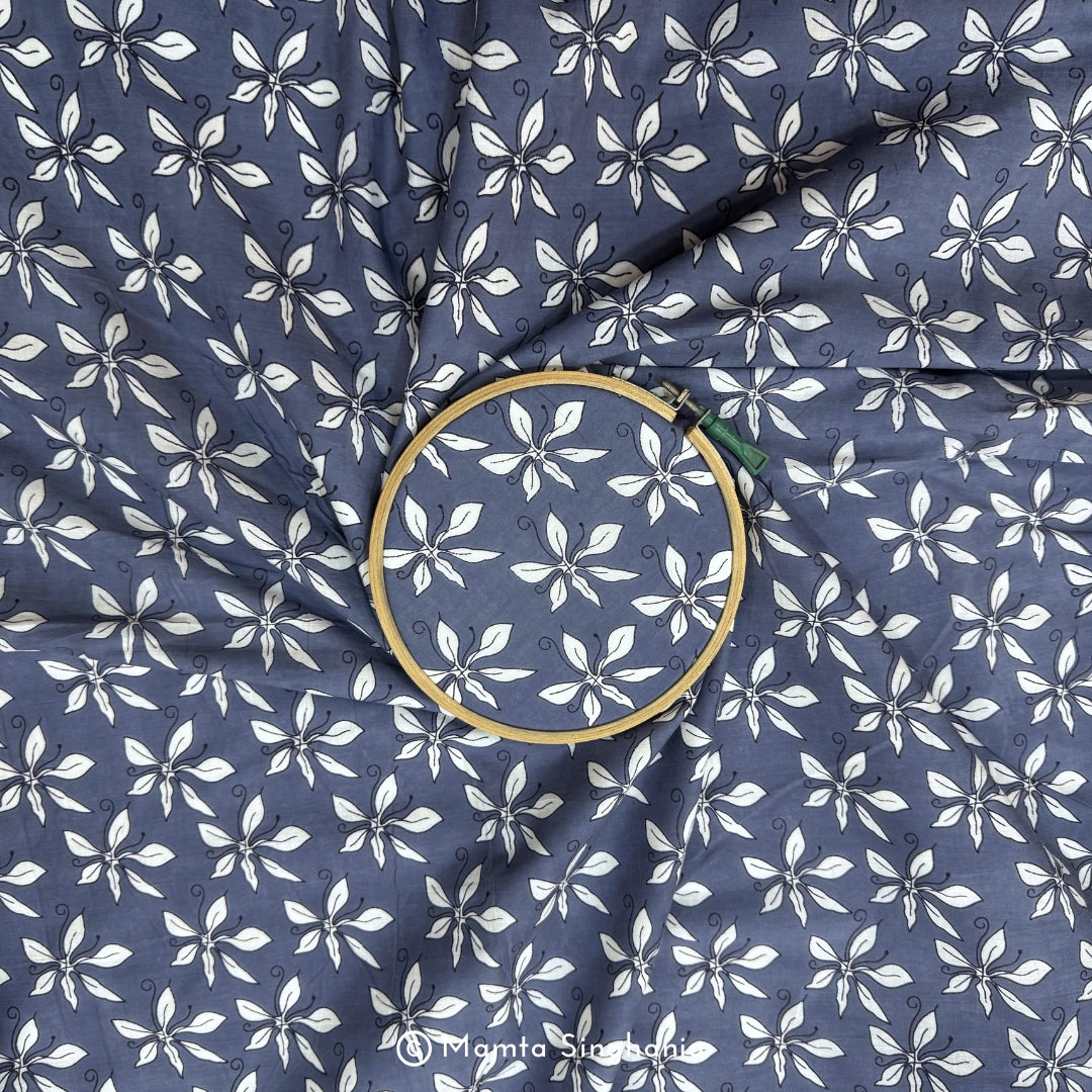 Lavender Blue Floral Printed Modal Satin Fabric