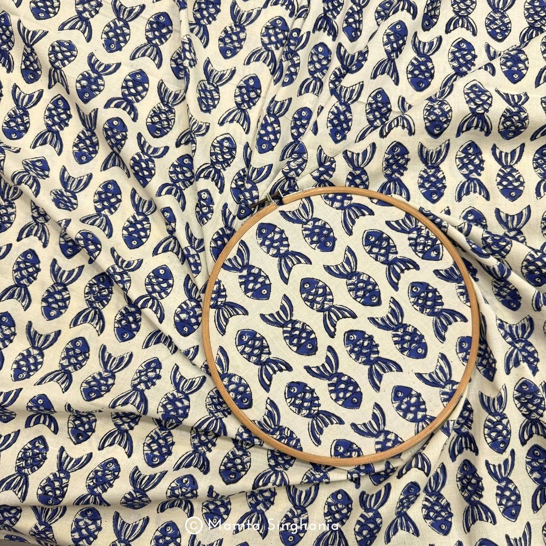Hand-block printed pure cotton fabric. Sanganeri is a hand-block printing technique originating from Sanganer, a village in the southern part of Jaipur, Rajasthan. Medium fine density cotton fabric suitable for all clothing purpose.
