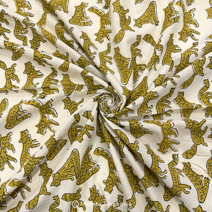 Hand-block printed pure cotton fabric. Sanganeri is a hand-block printing technique originating from Sanganer, a village in the southern part of Jaipur, Rajasthan. Medium fine density cotton fabric suitable for all clothing purpose.