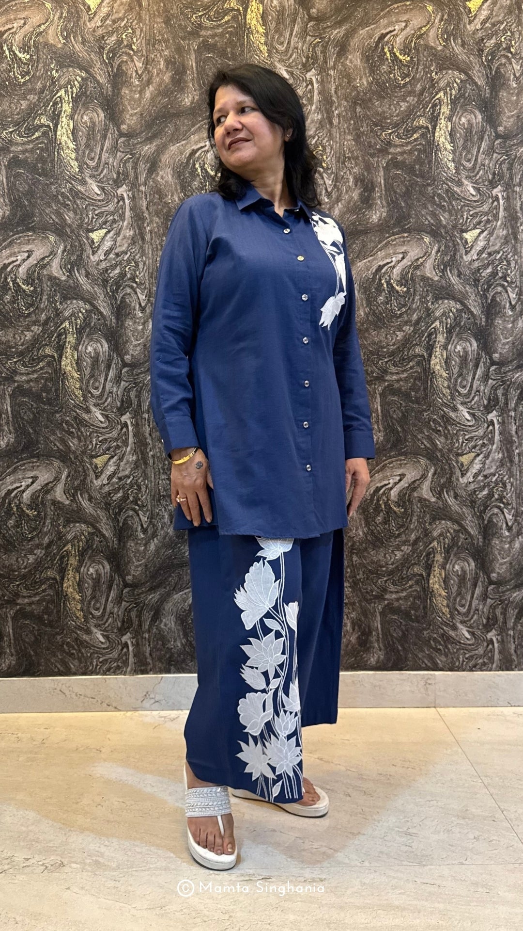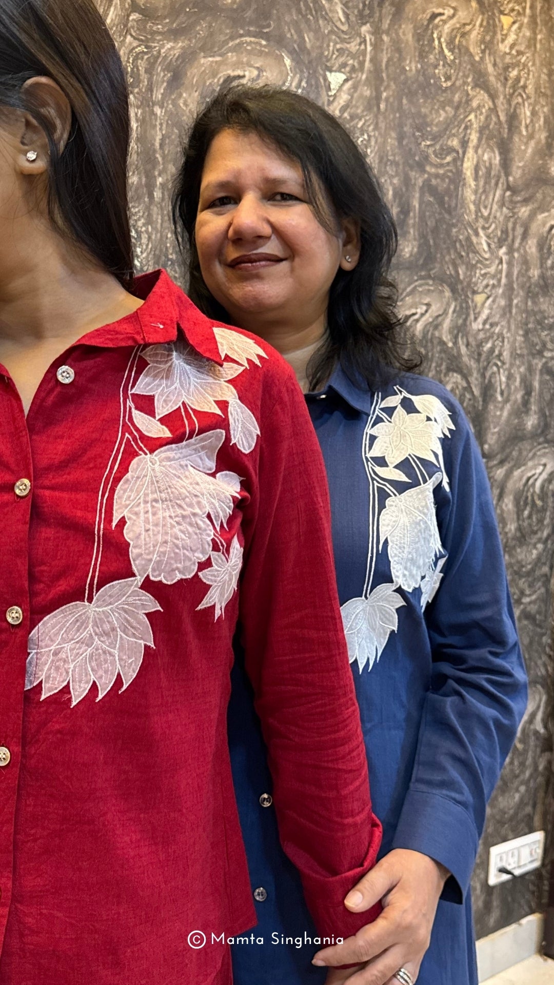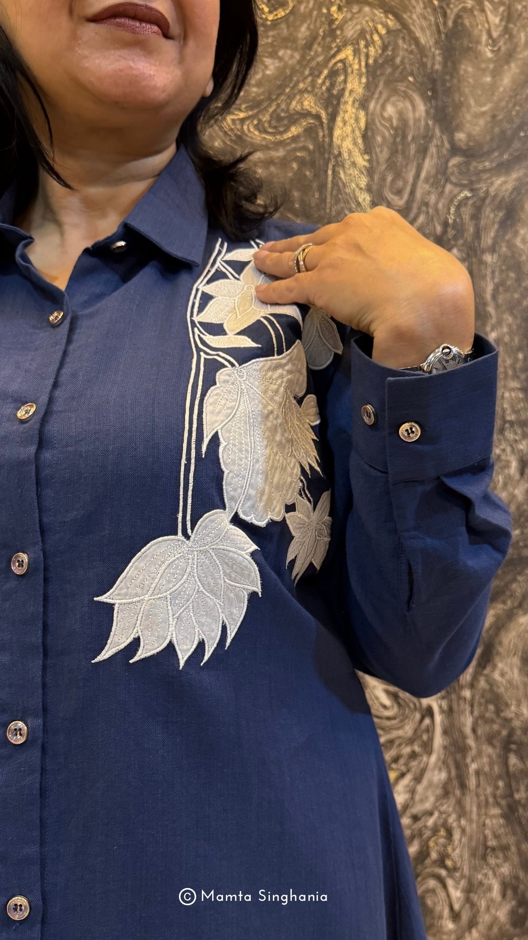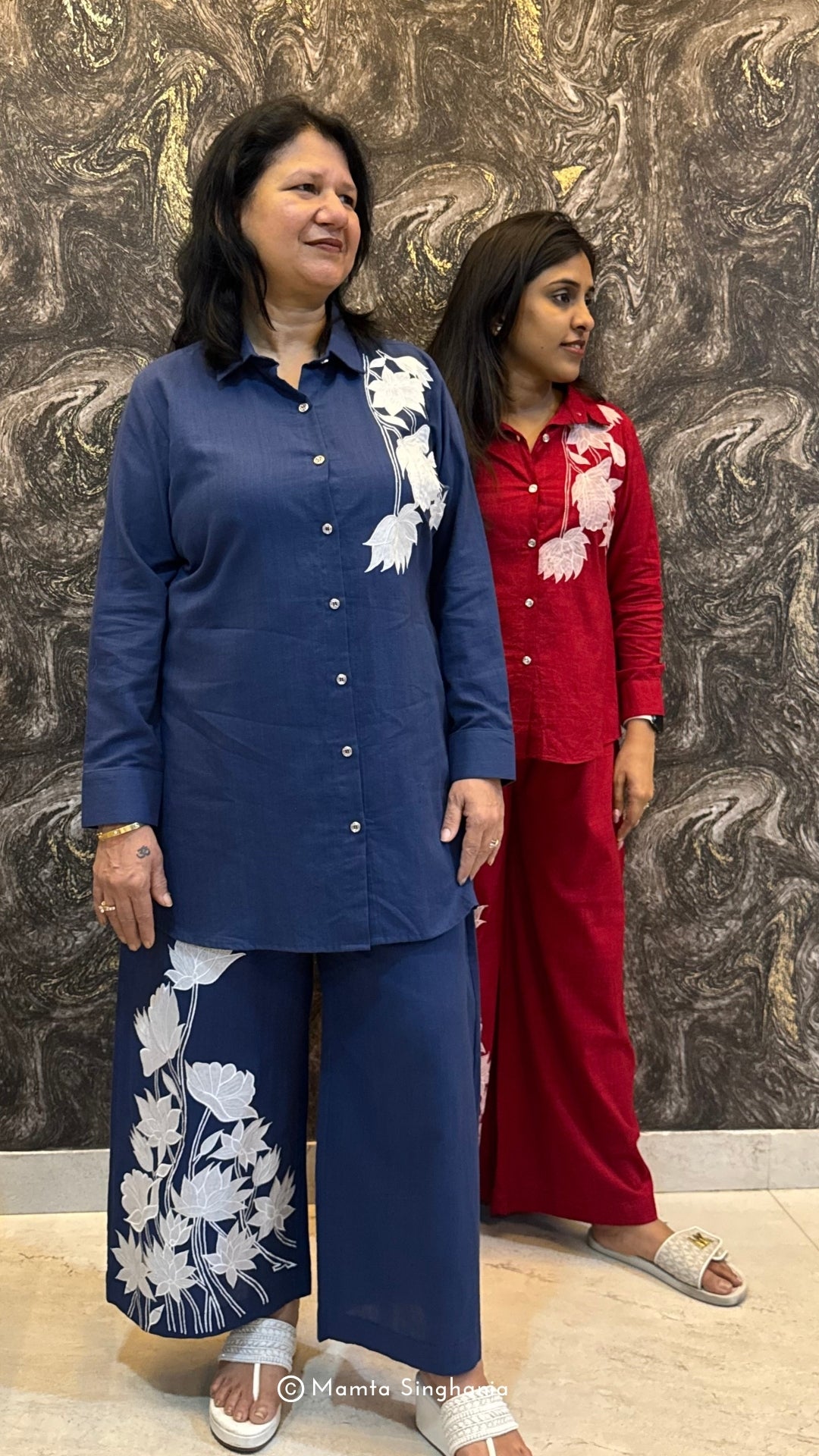 Handloom cotton co-ordinated set with intricate floral appliqué done in perfect harmony.