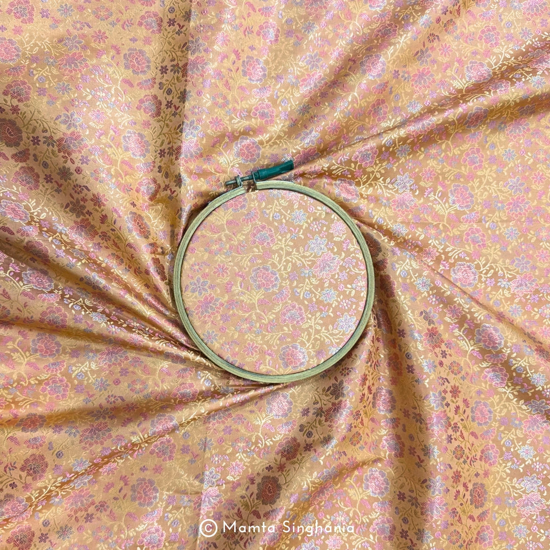 Peach Pink Floral Banarasi Brocade Katan Silk Fabric